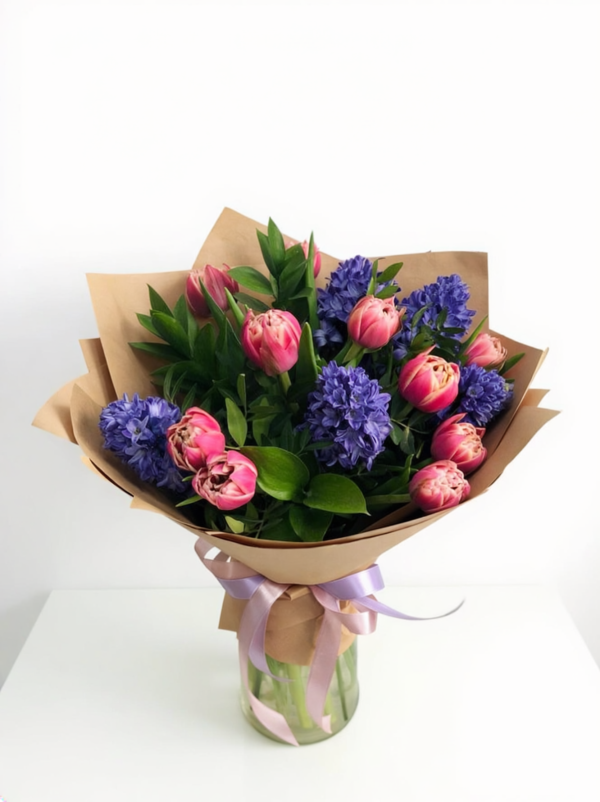 Buchetul Spring Duo Deluxe este o variantă mai bogată a combinației dintre lalele și zambile, oferind mai mult volum și un impact vizual puternic. Parfumul zambilelor completează prospețimea lalelelor, rezultând un aranjament floral elegant și echilibrat.